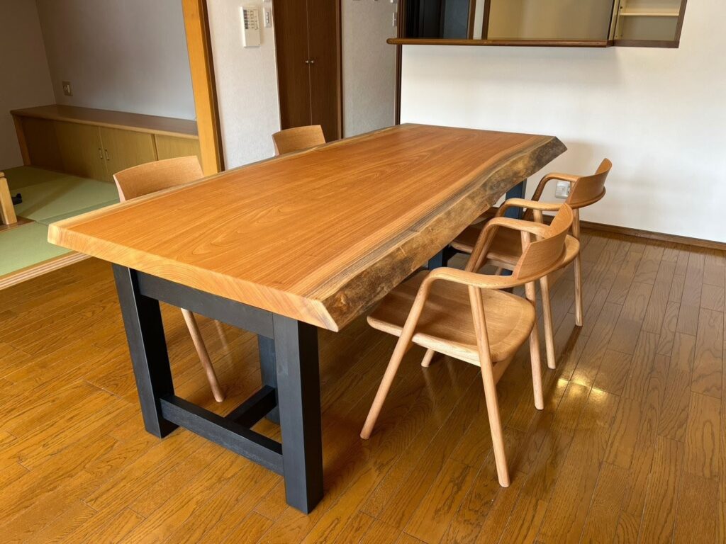 本日は宇治市のT様宅にケヤキの一枚板と椅子のお届けに行ってきました。